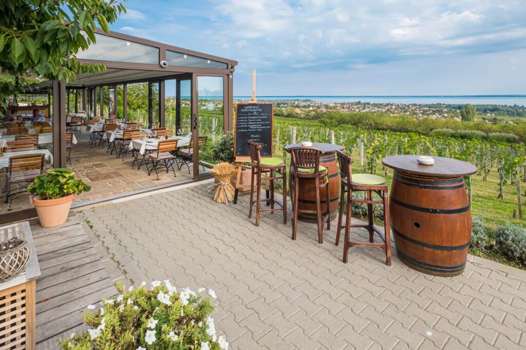 Találtam egy helyet nektek, ahol miközben a Balaton-felvidék ízes fehér-, rozé- és vörös borait kóstoljátok, megcsodálhatjátok a tanúhegyeket és a Balaton fenséges csillogását.